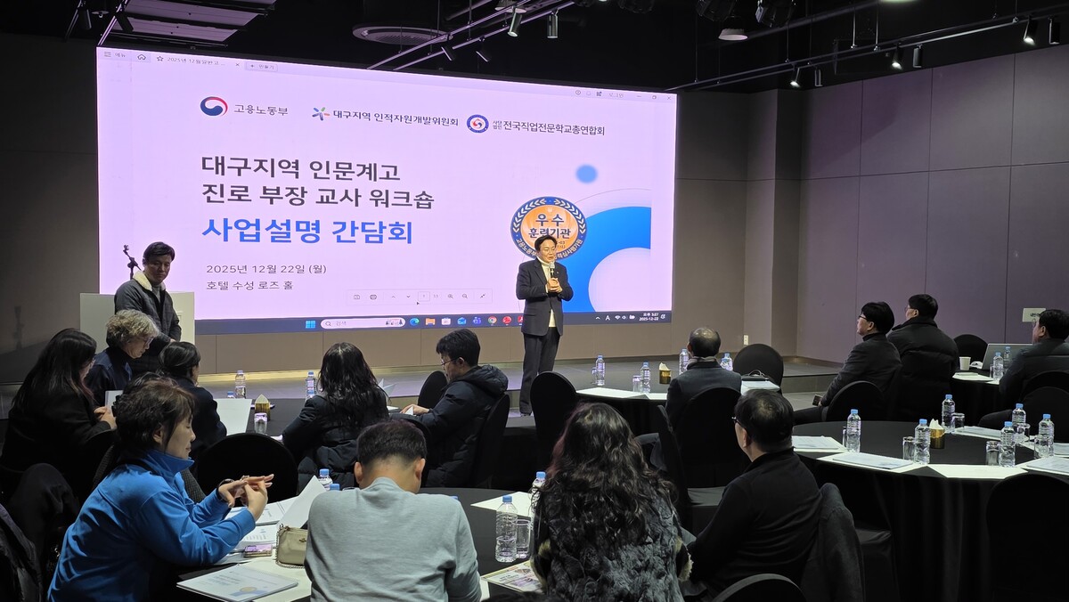 대구지역인적자원개발위원회(대구인자위, 설치기관: 대구상공회의소)는 지난 22일 수성호텔에서 ‘대구지역 인문계 고등학교 진로부장 대상 인력양성사업 설명 간담회’를 개최했다.