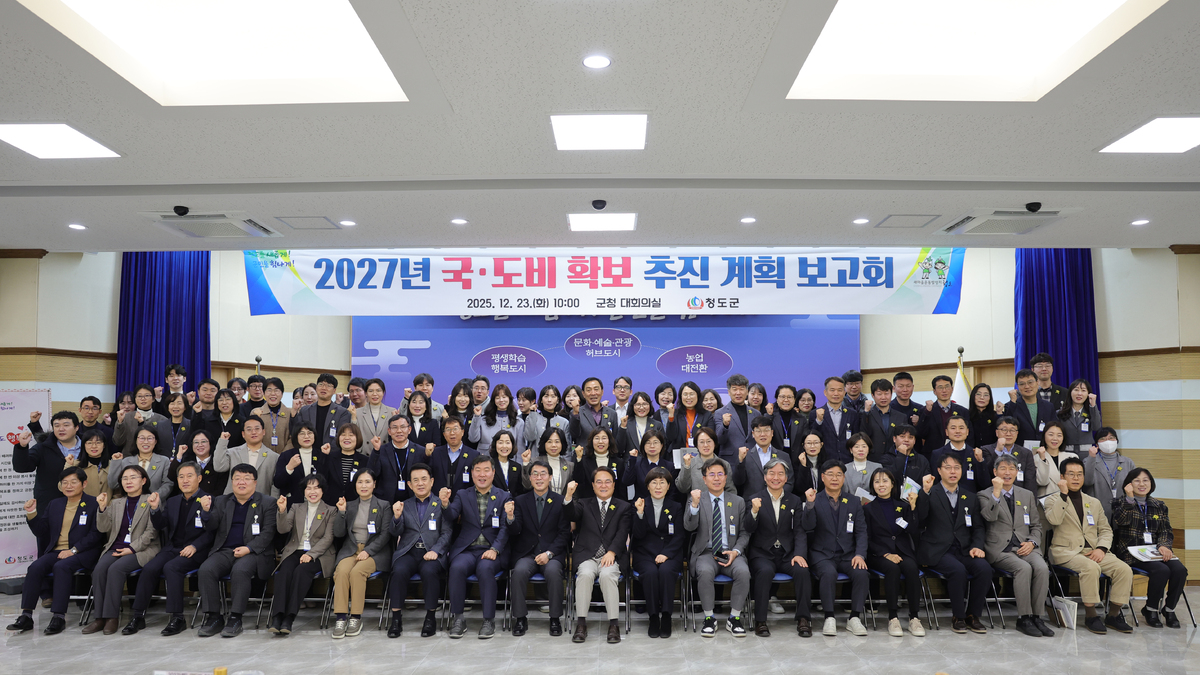 청도군이 23일 군청 대회의실에서 김하수 군수 주재로 부군수와 국장, 실과 소장 및 팀장 등 120여 명이 참석해 2027년도 국·도비 확보 추진 계획을 논의했다.