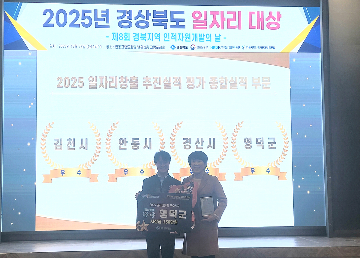 영덕군이 2025 경상북도 일자리 창출 추진 실적 평가에서 우수상을 받으며 4년 연속 수상의 쾌거를 달성했다.