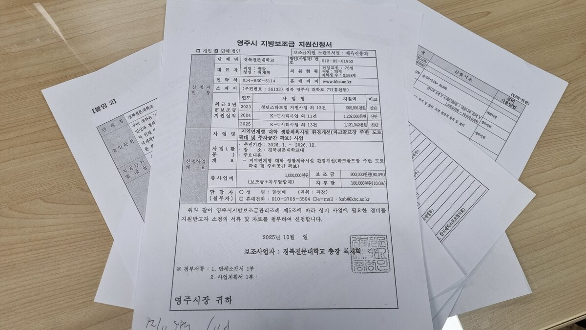 영주시는 2024년 경북전문대 캠퍼스 내 풋살 경기장 조성에 3억 6000만원, 파크골프장 시설 조성에 9억원을 지원했다. 또 내년도 대학 생활체육시설 환경개선 사업으로 도로 확대 및 주차공간 확보 명목으로 또다시 9억원의 예산을 편성했다가 지난 17일 시의회 예산결산특별위원회에서 전액 삭감됐다.
