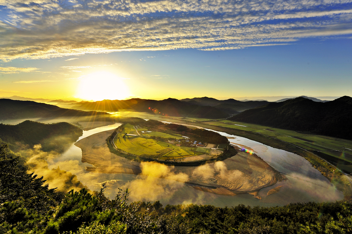 회룡포는 강이 마을을 감싸는 독특한 지형 덕분에 일출이 더욱 특별하다. 해가 떠오르면 강물이 황금빛으로 물들고, 마을과 산이 함께 빛나는 장면은 새해의 상징처럼 느껴진다. 안개가 잦아 운에 맡겨야 하지만, 안개가 적당히 낀 날에는 더욱 몽환적인 풍경이 펼쳐진다.