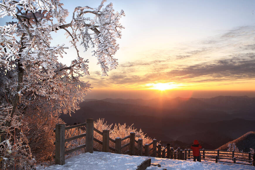 만물상은 기암괴석이 병풍처럼 둘러싸여 있어, 해가 떠오르는 순간 바위 하나하나가 붉게 빛난다. 고난도 산행이지만, 정상에서 맞는 일출은 압도적이다. 바위 능선 위로 해가 걸리는 장면은 새해의 시작을 강렬하게 각인시킨다.