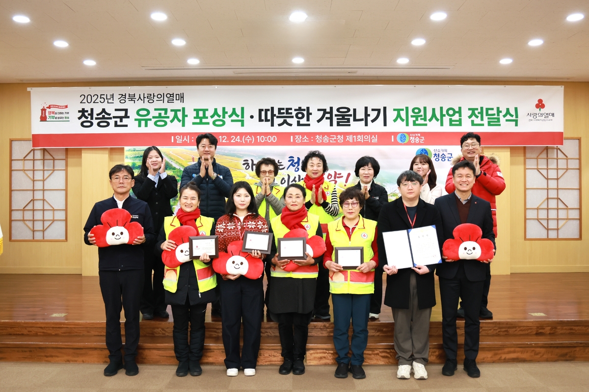 청송군은 최근 군청 제1회의실에서 경북사회복지공동모금회(회장 전우헌) 주관으로 ‘2025년 따뜻한 겨울나기 전달식 및 사랑의열매 유공자 포상식’을 개최했다.