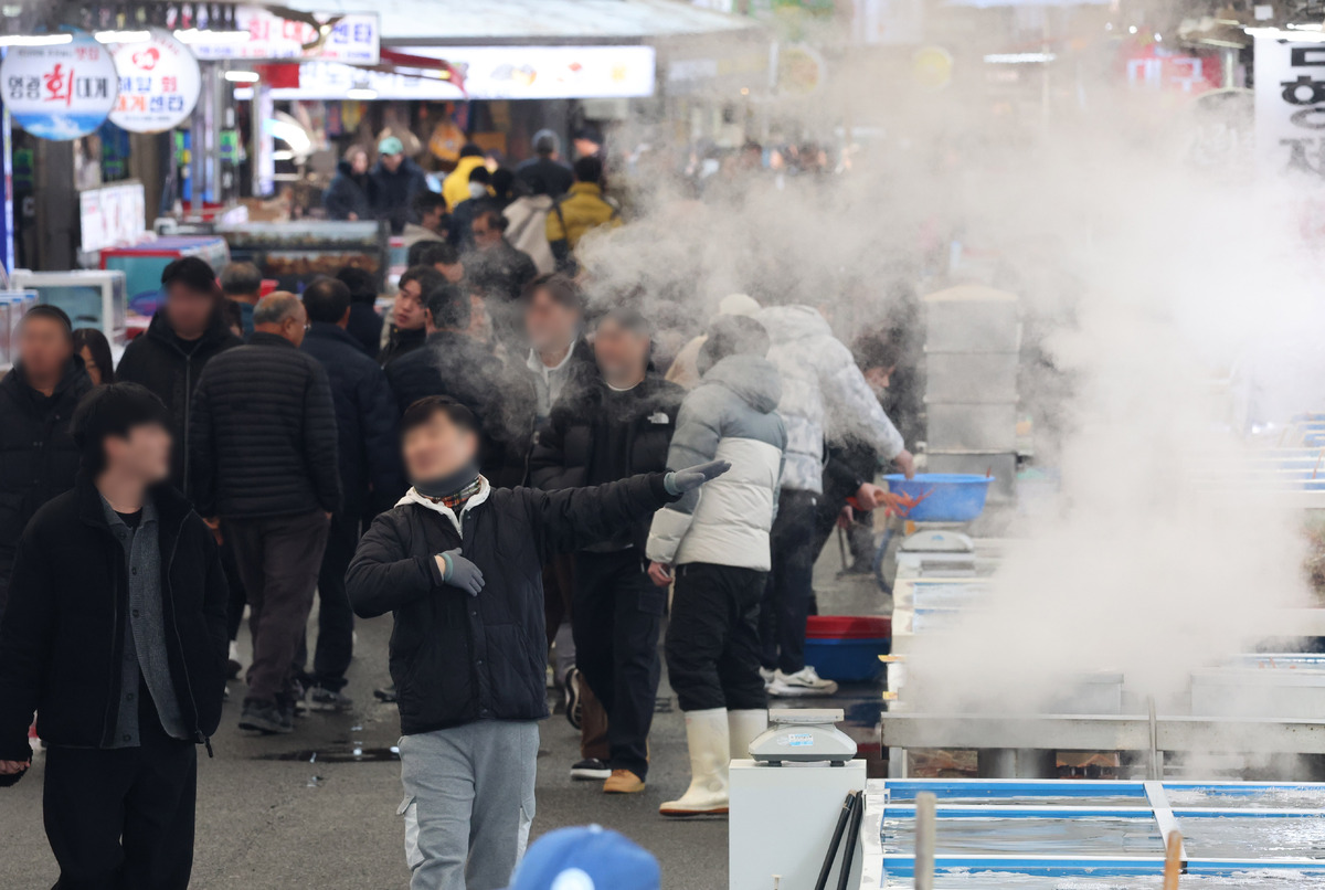 2025년의 마지막 휴일인 28일 오후 포항 죽도시장 관광객들이 대게 찌는 맛있는 냄새가 가득한 대게 거리에서 맛집을 찾고 있다. /이용선기자 photokid@kbmaeil.com