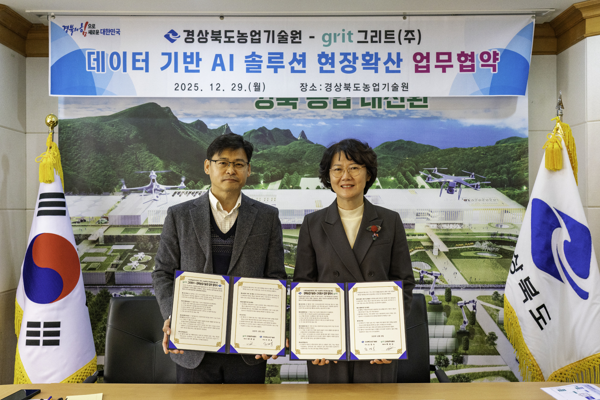 조영숙 기술원장은 “이번 협약은 2026년 인공지능 디지털농업 원년의 출발점으로, 경북 농업의 디지털 전환을 가속화하는 기폭제가 될 것”이라며 “그리트㈜의 우수한 AI 기술을 통해 농가 소득 증대와 노동력 절감에 기여할 수 있도록 최선을 다하겠다”고 강조했다.