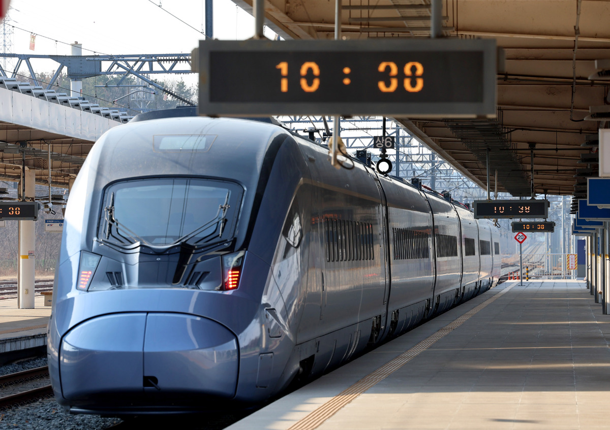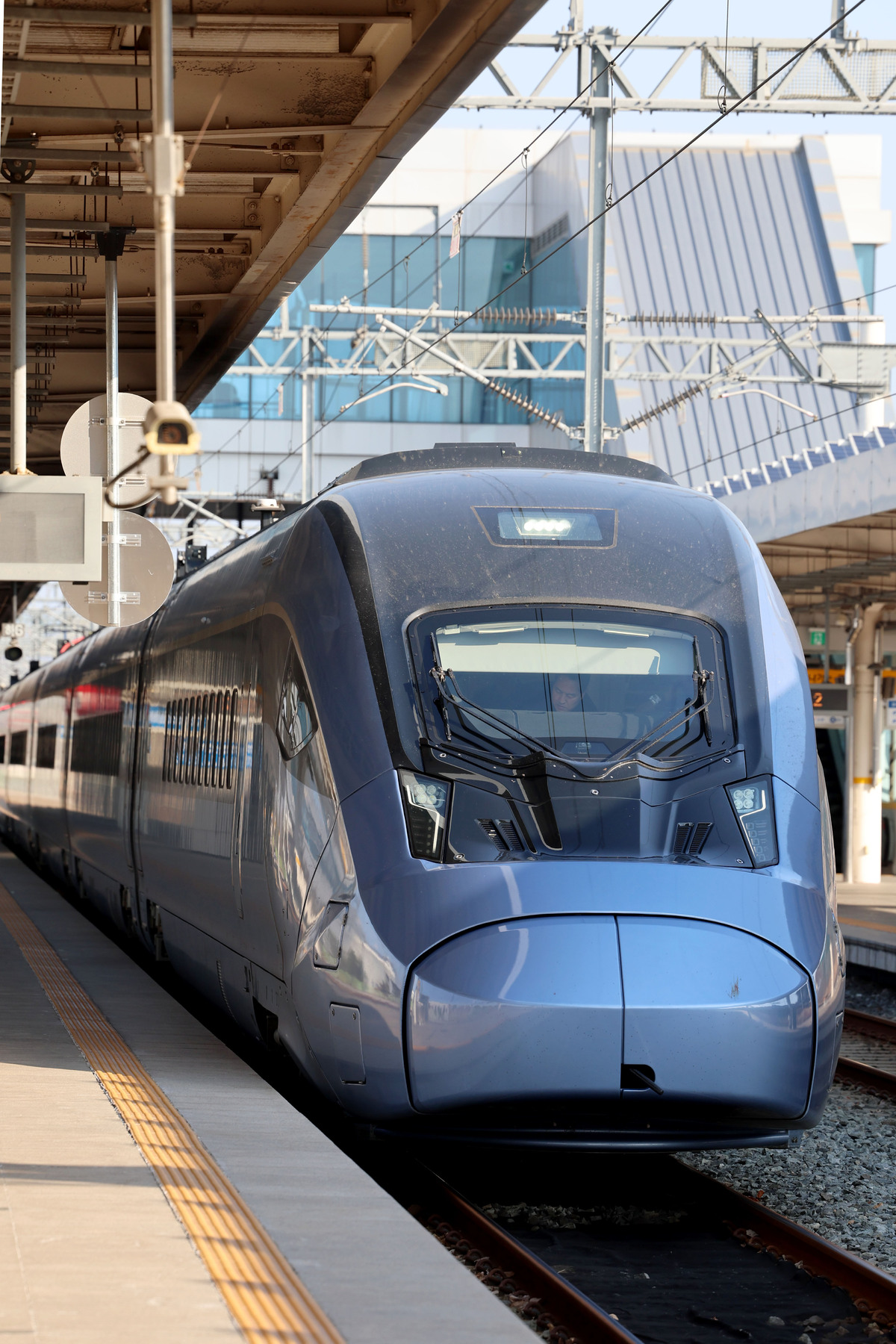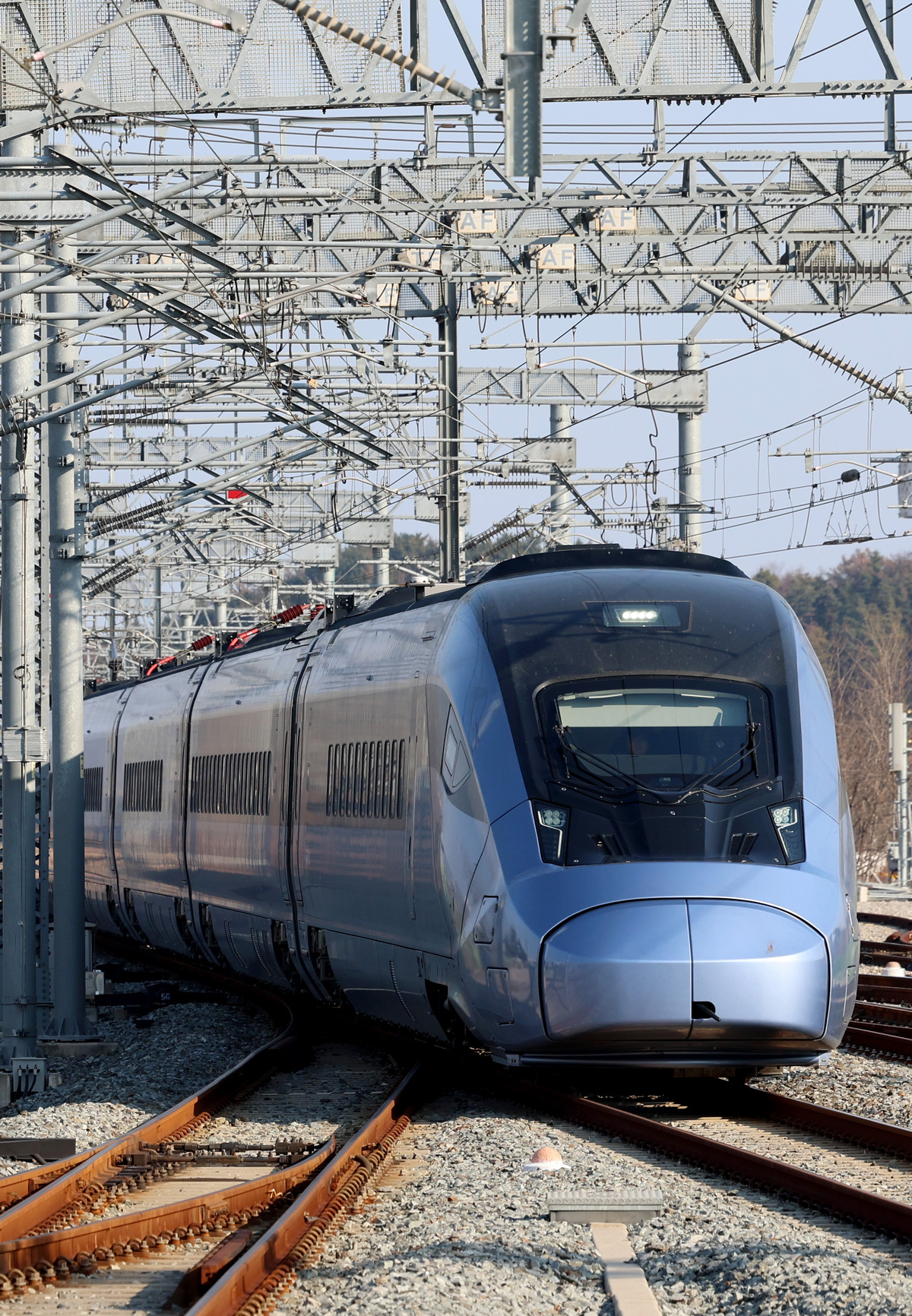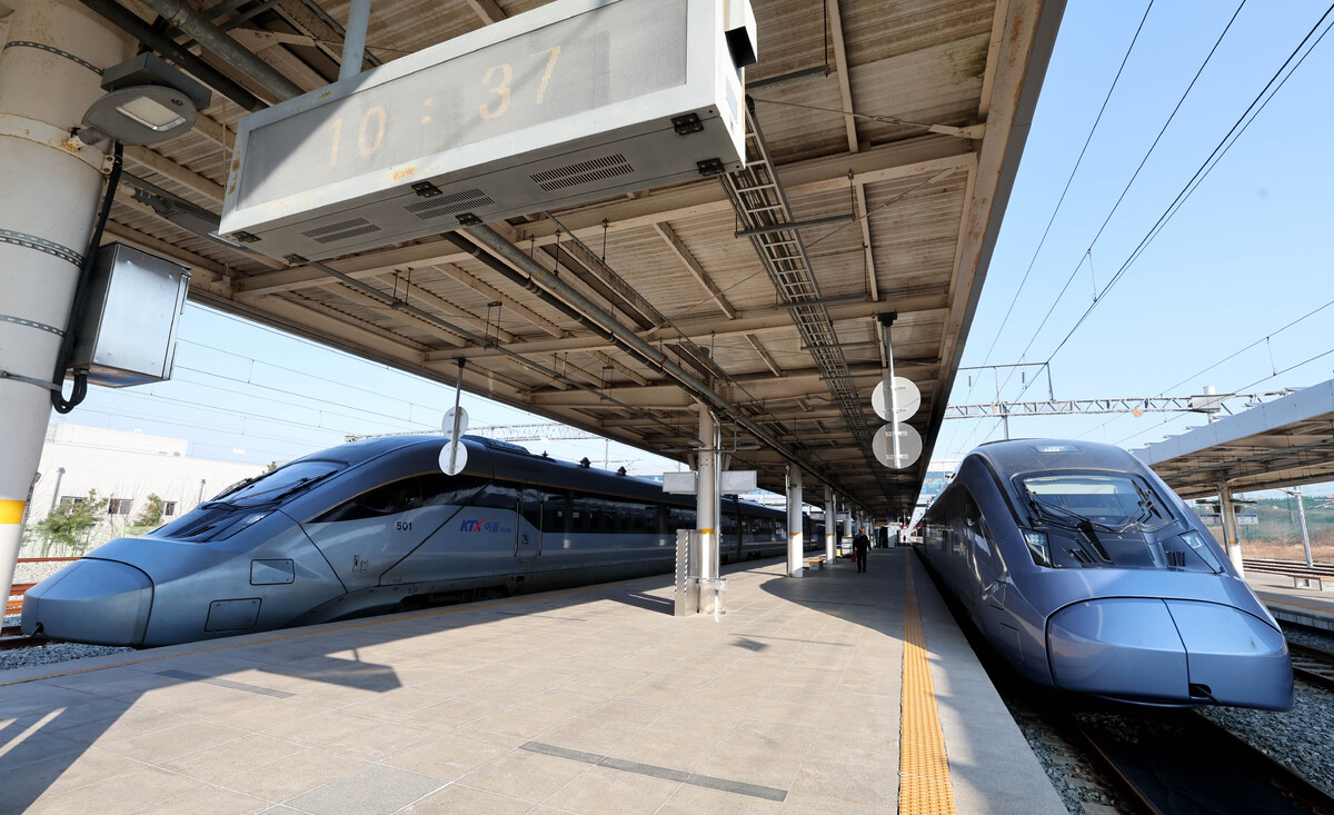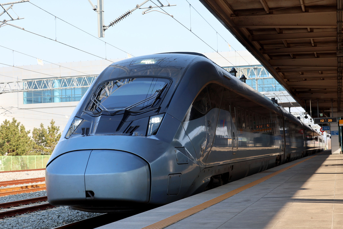 강릉과 부산을 잇는 동해선에 시속 260km로 달리는 고속철도 ‘KTX-이음’이 하루 6회(상·하행선 각 3회) 신규 투입된다. 기존 준고속열차인 ‘ITX-마음(최고 시속 150㎞)’보다 포항~강릉은 평균 36분 단축되고, 포항~부전은 33분 줄어든다. 29일 오전 강릉에서 출발한 KTX-이음 시험 운행 열차가 포항역에 정차해 있다. /이용선기자 photokid@kbmaeil.com