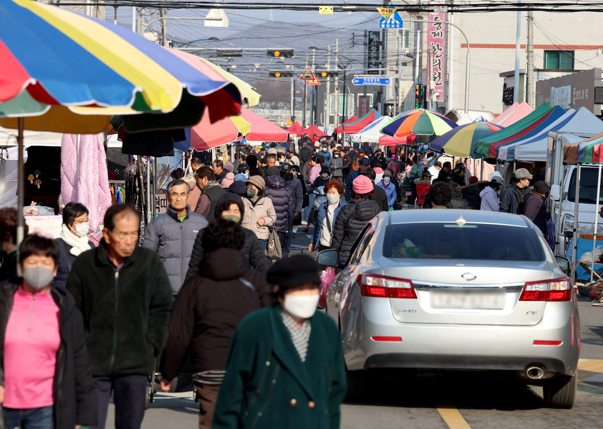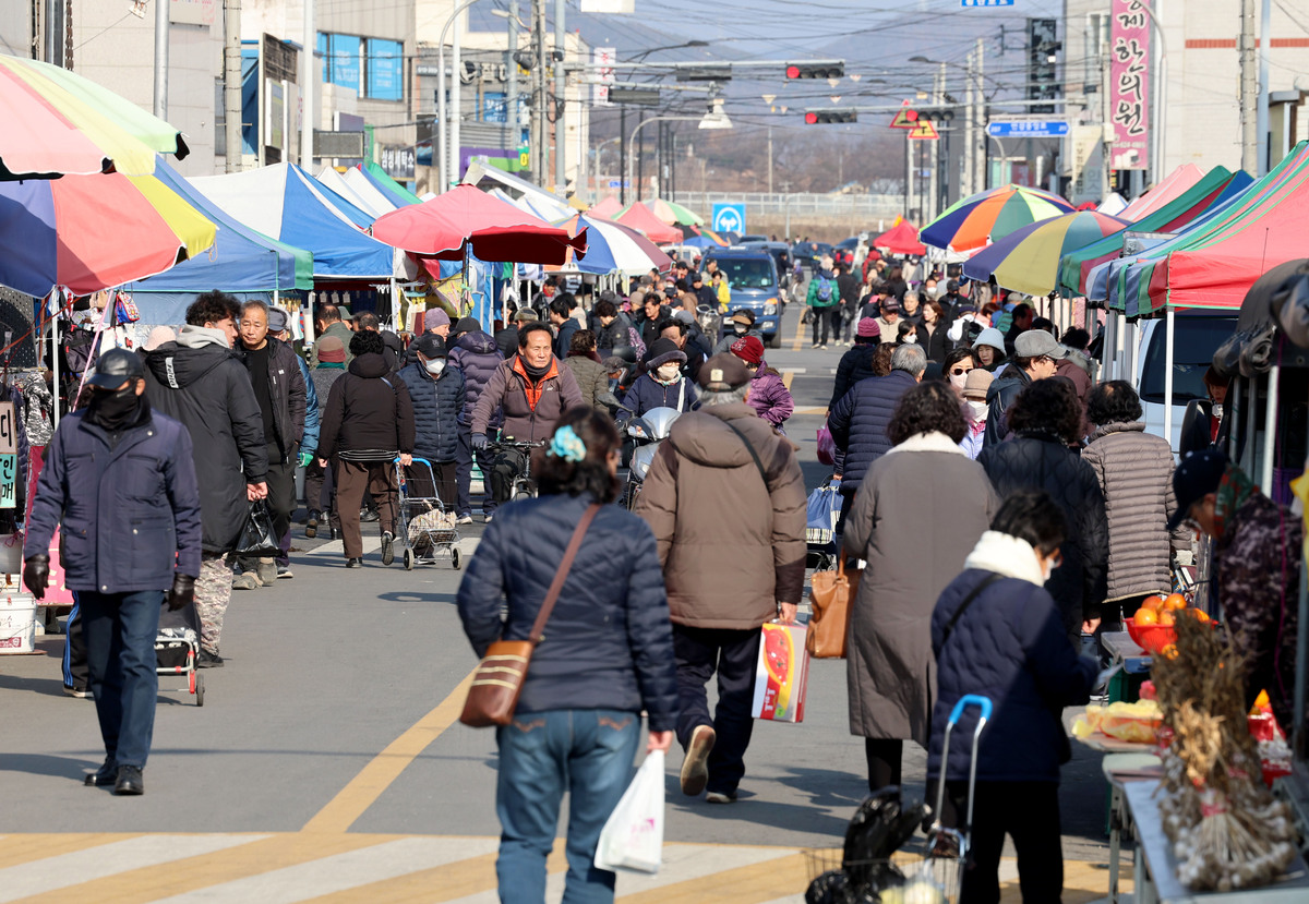 경주 지역 낮 최고 기온이 13.7℃를 기록하며 포근한 날씨를 보인 29일 오후 오일장이 열린 안강읍 전통시장이 장을 보려는 시민들로 북적이고 있다. /이용선기자 photokid@kbmaeil.com