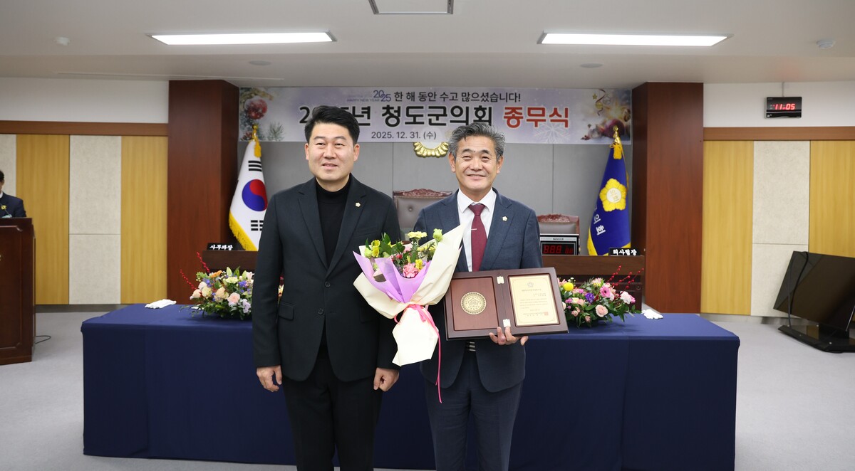 청도군의회 전종율 의장이 대한민국 시·군·자치구의회 의장협의회의 ‘대한민국 지방 의정 봉사상’을 받았다.