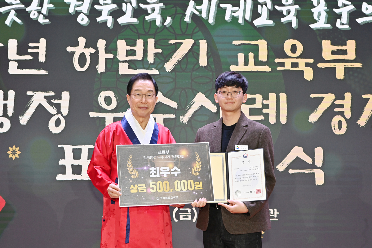 경북교육청이 교육부 주관 ‘2025 하반기 적극행정 우수사례 경진대회’에서 시·도교육청 부문 10회 연속 수상의 영예를 안았다. 특히 올해 상반기와 하반기 모두 최우수상과 우수상을 동시에 수상하며 적극행정 선도기관으로서의 위상을 다시 한번 입증했다.