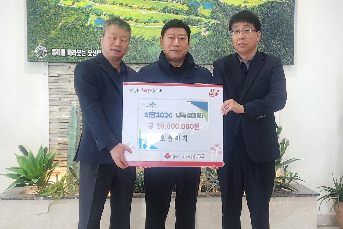 이번 성금은 오션비치 사업장이 위치한 강구면과 남정면에 각각 500만 원씩 전달돼 지역 내 취약계층과 소외된 이웃을 위해 사용될 예정이다.