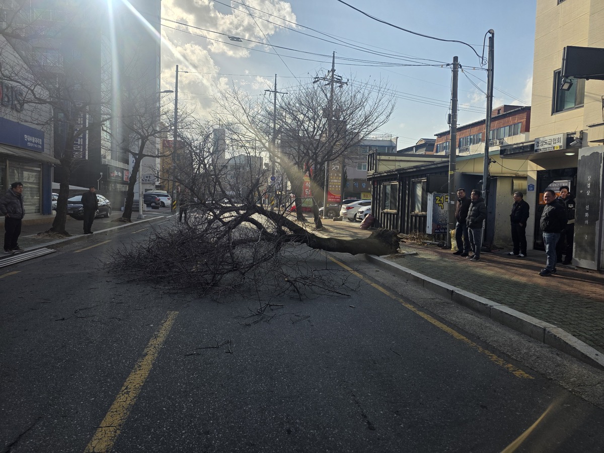 강풍에 쓰러진 가로수…경찰 신속 조치로 통행 재개