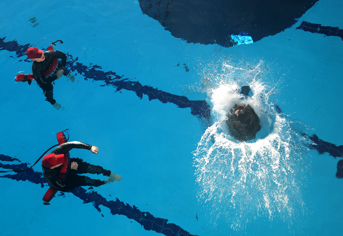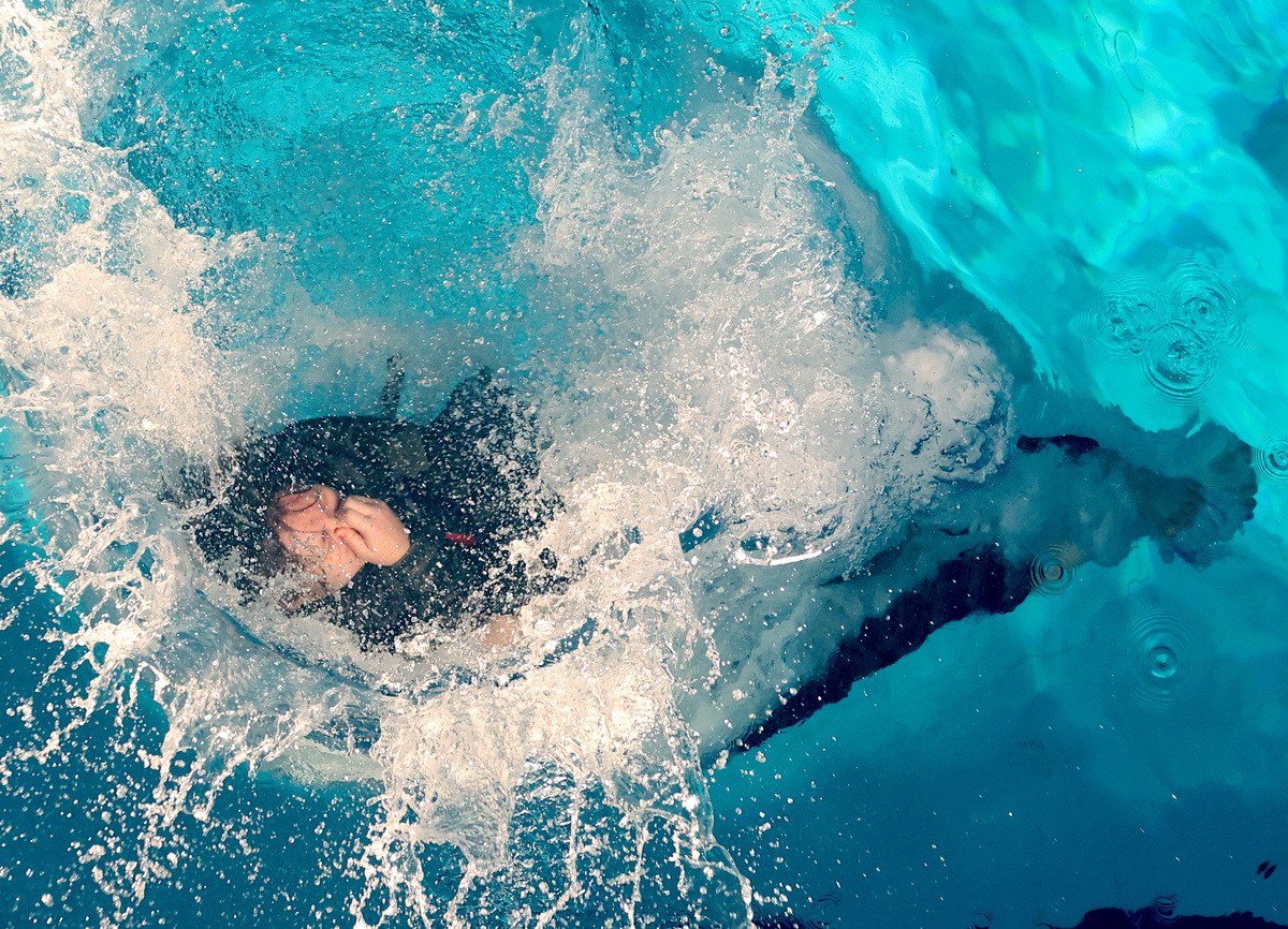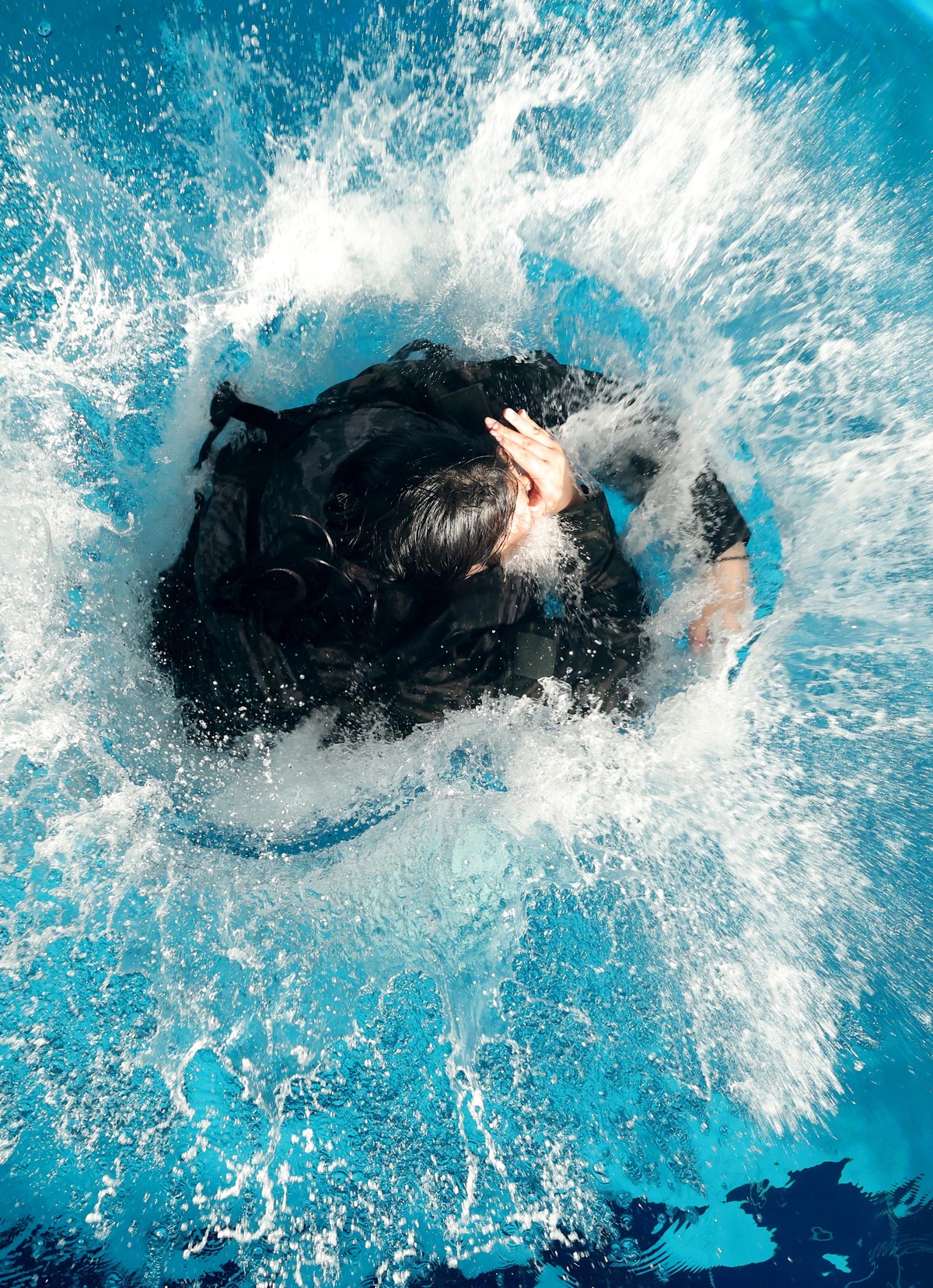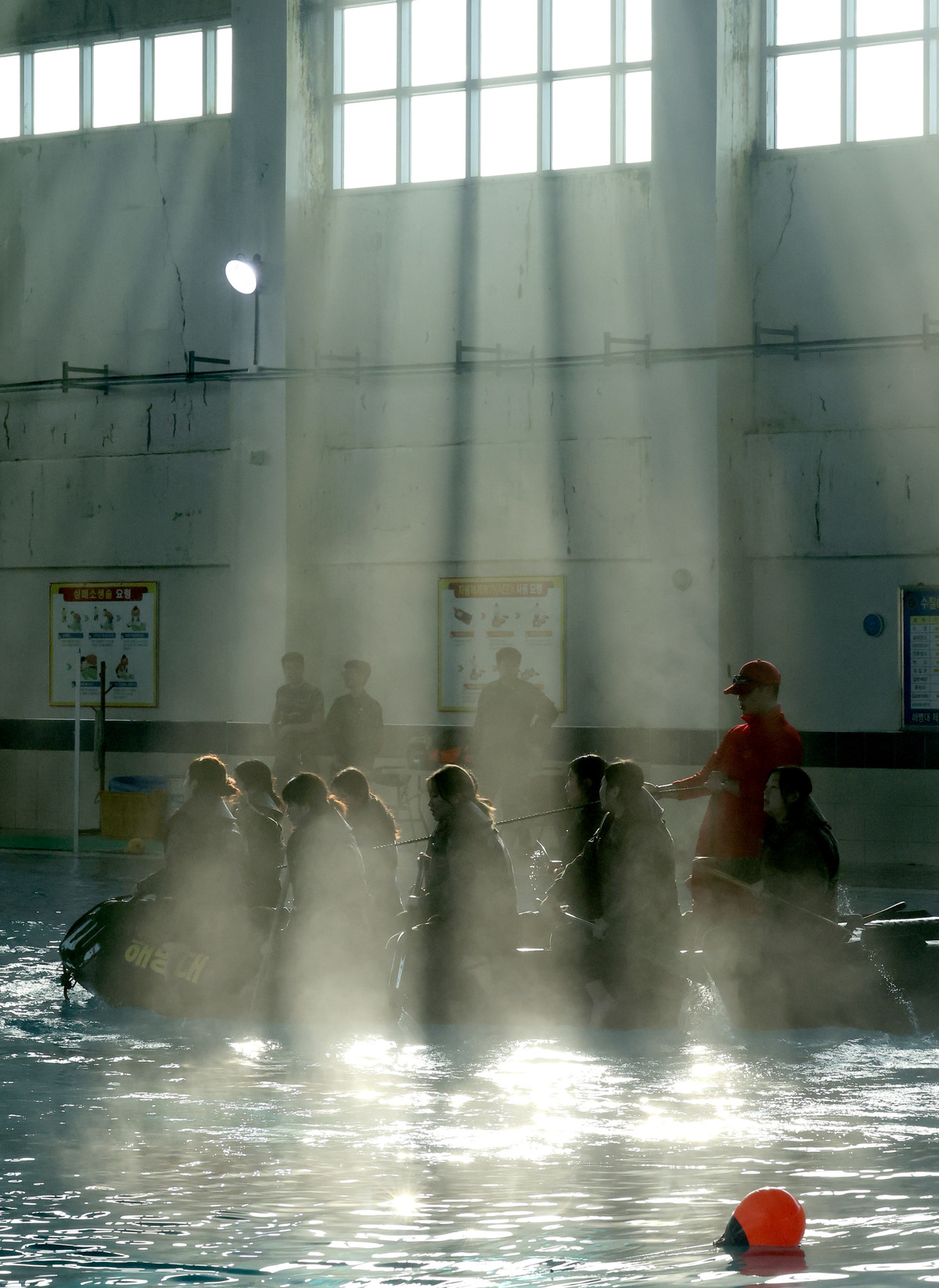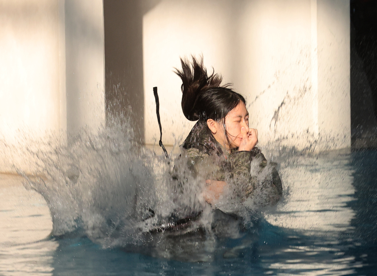 13일 오전 포항 해병대 1사단에서 열린 ‘2026년 겨울 해병대 캠프’ 참가자들이 인천상륙관 다이빙대에서 비상시 함정을 탈출하는 이함훈련을 하고 있다. /이용선기자 photokid@kbmaeil.com