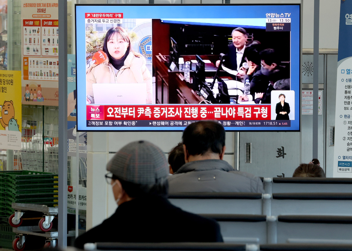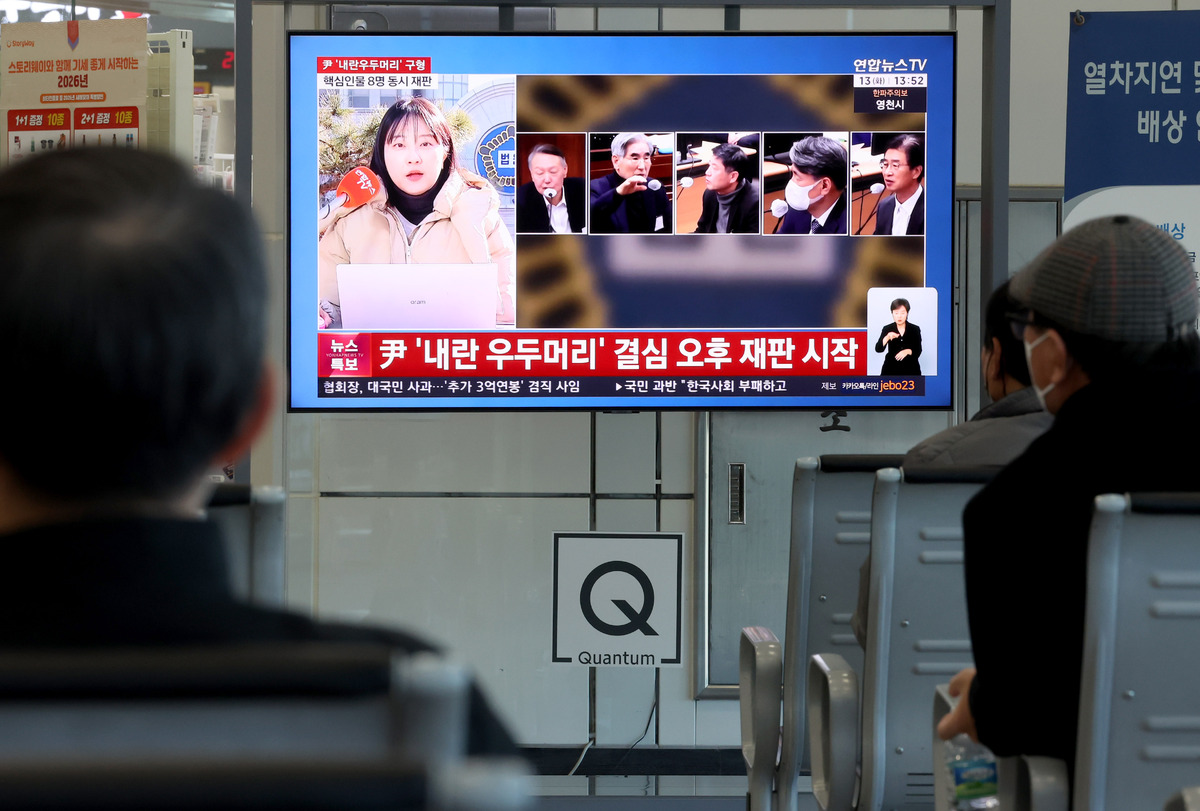 내란 사건 2차 결심공판이 열린 13일 오후 포항역 대기실에서 시민들이 관련 뉴스를 시청하고 있다. /이용선기자 photokid@kbmaeil.com