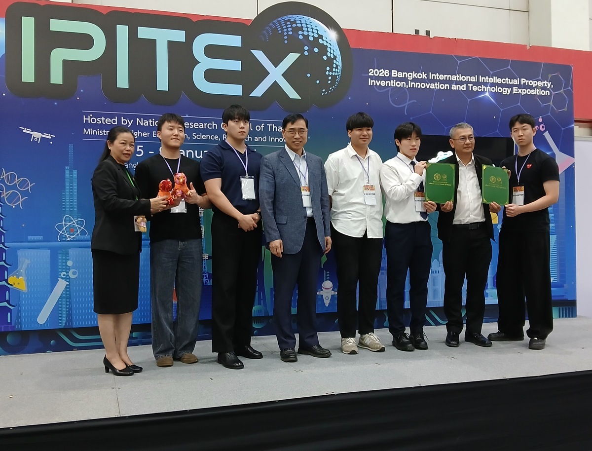 금오공대 학생들로 구성된 2개 팀이 ‘2026 태국 방콕 지식재산·발명·혁신·기술 전시회(IPITEx 2026)’에서 모두 ‘금상’을 수상했다.