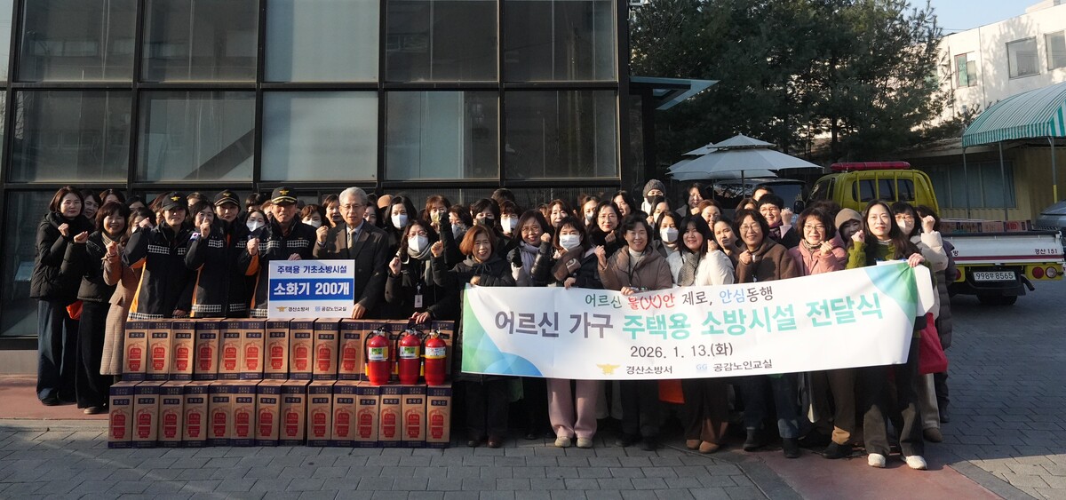 한창완 경산소방서장은 “어르신 가정의 화재는 초기 대응이 무엇보다 중요해 이번 소화기 전달이 화재 피해를 줄이는 데 실질적인 도움이 되길 바란다”며 “앞으로도 지역 복지기관과 협력해 생활밀착형 화재 예방 활동을 지속으로 추진하겠다”고 말했다.