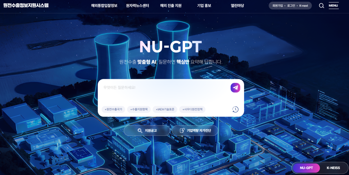 NU-GPT 시스템은 원전수출정보지원시스템(k-neiss.org)에 접속해 이용할 수 있다.