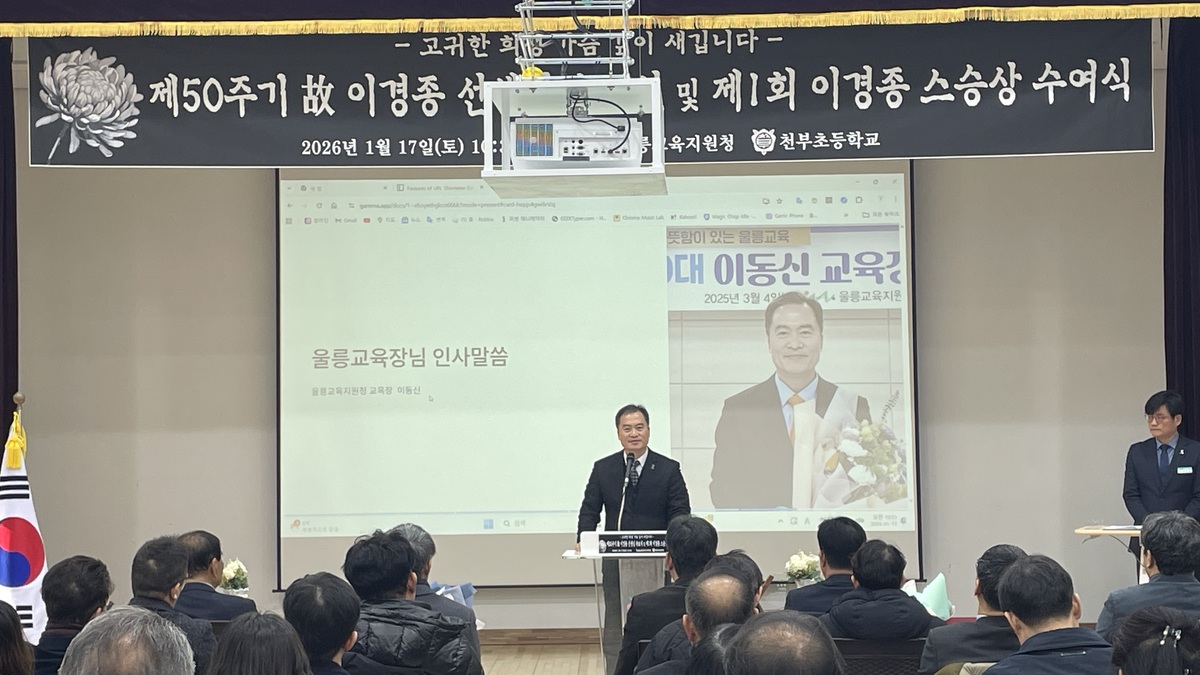 이동신 울릉교육장은 “이경종 선생님의 순직 50주년을 맞아 열린 이번 추모식과 첫 스승 상 시상식은 울릉 교육의 자긍심을 바로 세우는 역사적인 순간”이라며 “제자를 위해 목숨까지 바친 선생님의 숭고한 뜻을 받들어, 아이들이 안전하고 행복하게 성장할 수 있는 교육 환경을 만드는 데 모든 역량을 집중하겠다”라고 말했다.