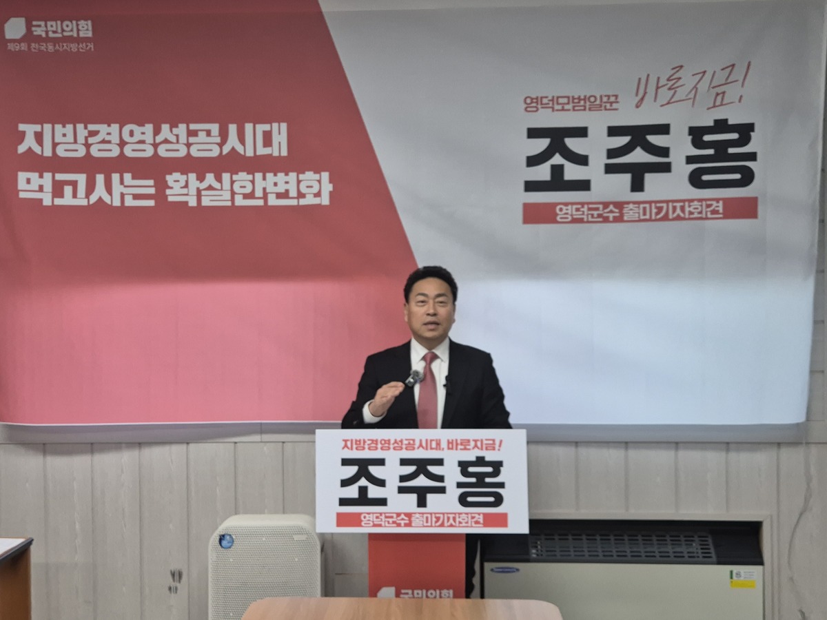 조주홍 전 국회부의장 선임 비서관이 19일 영덕군청 브리핑룸에서 기자회견을 열고 오는 6월 3일 실시되는 제9회 전국동시지방선거 영덕군수 선거 출마를 공식 선언했다.