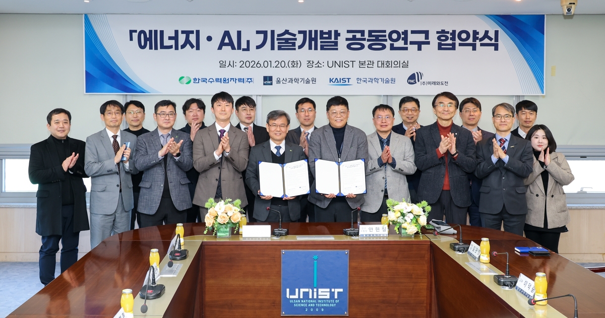 한수원은 20일 UNIST 본관 대회의실에서 UNIST 컨소시엄(참여 연구기관: 한국과학기술원(KAIST), ㈜미래와도전)과 ‘에너지·AI 기술개발 공동연구 협약’을 체결했다.