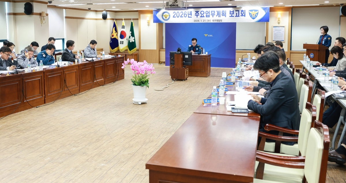 대구경찰청은 21일 부장, 과·담당관, 경찰서장 등 지휘부가 참석한 가운데 ‘2026년 주요업무계획 보고회’를 열고 내년도 치안 정책 방향을 논의했다.