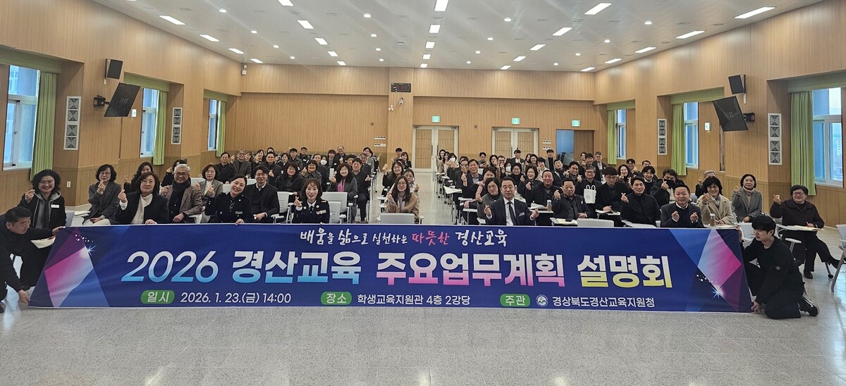 경상북도 경산교육지원청은 23일 학부모 단체 대표자와 지역 교(원)장 등 100여 명에게 2026 경산교육계획을 설명했다.