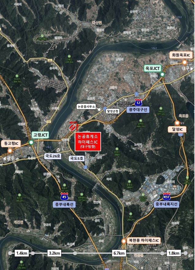 26일 국토교통부는 최근 광주–대구 고속도로 논공휴게소 하이패스IC 설치를 위한 고속도로 연결 허가를 승인했다고 밝혔다. 이번 사업으로 논공읍 주민들은 고령군 동고령IC를 우회하지 않고도 고속도로를 바로 이용할 수 있게 된다.