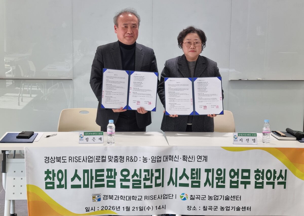 경북과학대학교 라이즈사업단은 사업 기획과 기술 자문, 성과 분석을 맡고, 칠곡군농업기술센터는 참여 농가 선정과 현장 관리, 스마트팜 활용 지도에 협력한다.