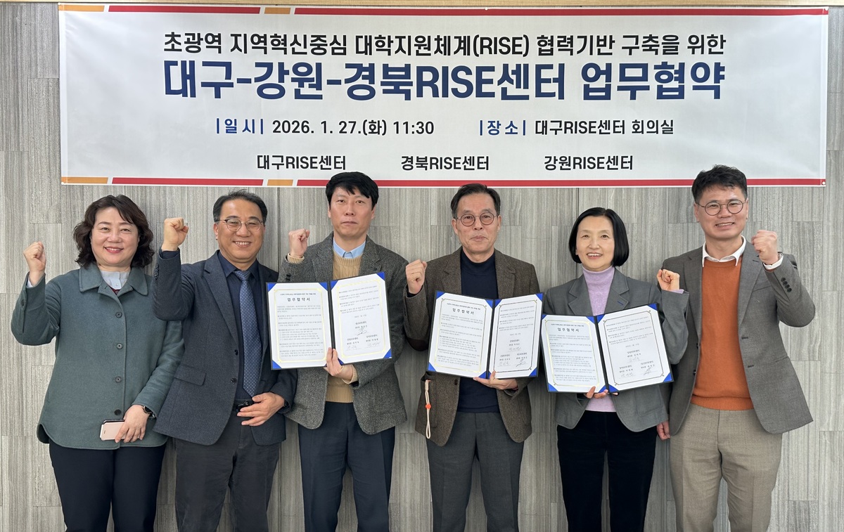 한편 대구RISE센터는 앞서 경북RISE센터, 강원RISE센터와 각각 양자 간 업무협약을 체결하는 등 초광역 RISE 연계 협력체계 구축을 단계적으로 추진해 왔다. 이번 3자 협약을 계기로 권역 간 연계와 협업이 한층 강화될 것으로 기대된다.