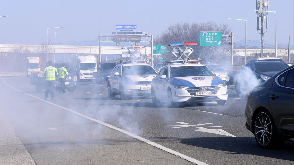 훈련에는 경찰과 지자체, 소방 등 관계기관이 참여해 사고 발생 직후 신속한 차로 통제와 후행 차량 감속·서행 유도를 중심으로 실제 현장 대응 절차를 점검했다. 특히 사고 현장 접근부터 교통 흐름 관리, 안전 조치까지 단계별 대응 과정이 중점적으로 이뤄졌다.