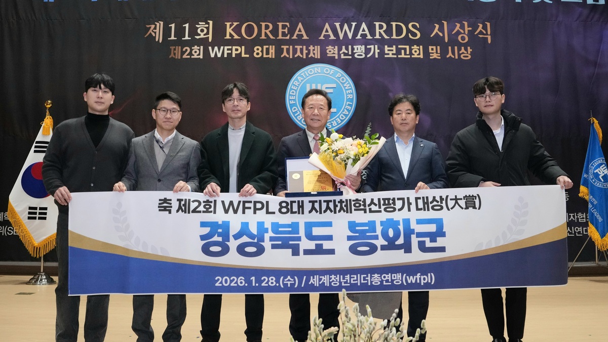 봉화군이 세계청년리더총연맹(WFPL) 부설 지자체혁신평가위원회(GEC)가 주관한 ‘제2회 WFPL 8대 지자체 혁신평가’에서 기관 부문 최고상인 ‘대상(大賞)’을 받았다.