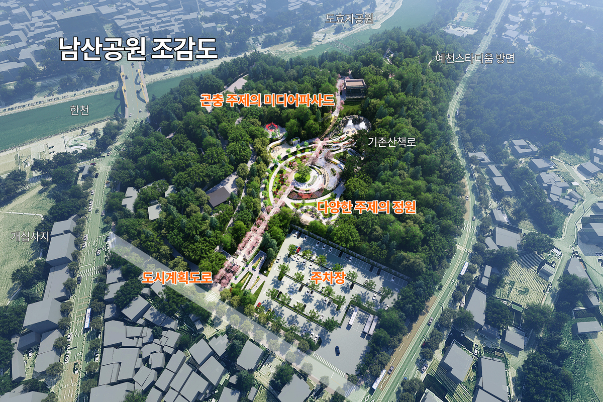 예천을 대표하는 남산공원은 석가산과 정원을 유지하면서 곤충을 주제로 한 야간경관 콘텐츠를 도입해 새로운 변화를 시도한다.