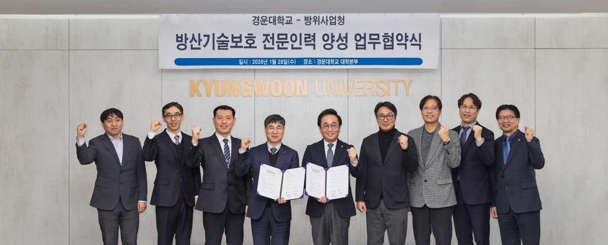 경운대는 28일 최호성 부총장과 방위사업청 한경수 국방기술개발보호국장 등이 참석한 가운데 대학본부에서 방산기술보호 전문인력 양성을 위한 업무협약을 체결했다.