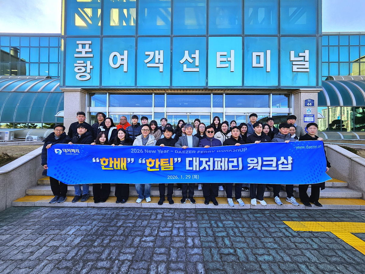 대저페리는 지난 29일 포항 본부 대회의실에서 전 임직원과 선원이 참석한 가운데 ‘한 팀, 한 배’를 주제로 한 워크숍을 개최했다고 30일 밝혔다. 이번 워크숍은 해상(선박)과 육상(사무실)이라는 근무 환경의 특성상 평소 한자리에 모이기 어려웠던 전 부서 인원들이 소통하며 올해 사업 목표를 공유하기 위해 마련됐다.