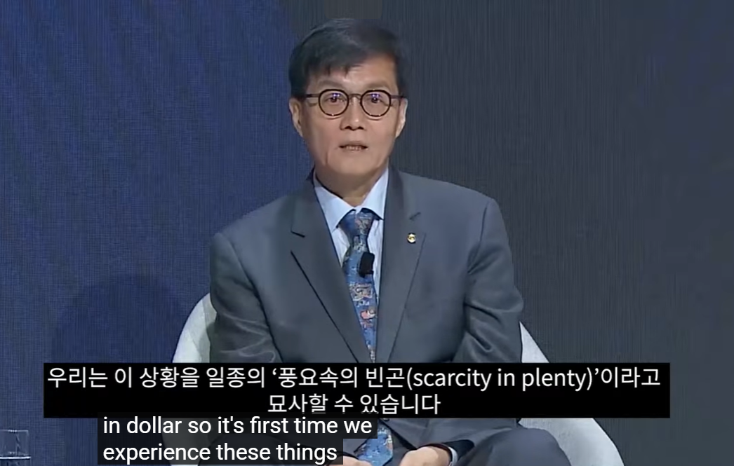 이 총재는 “달러가 풍부한데도 부족한 것처럼 움직였다”면서 “외환 스왑 시장에서는 달러 가격이 사상 최저 수준이었지만, 현물 시장에서는 최고 수준이었다. 이는 국내 투자자들 특히 개인과 기관, 국민연금이 원화 추가 약세를 예상하고 달러를 보유했기 때문이었다”고 진단했다.