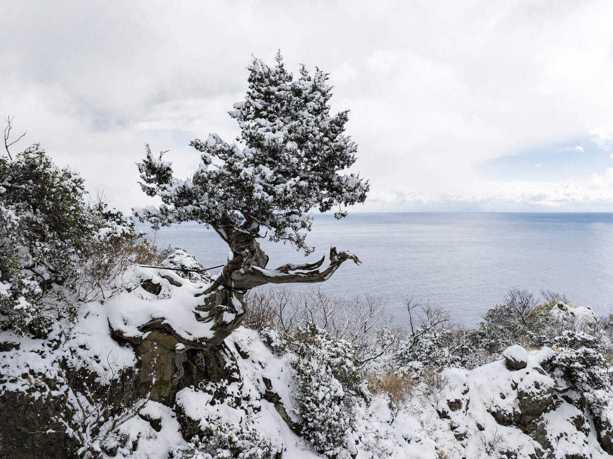 국내 최고령 노거수, 90m 해안 절벽 위 꿋꿋한 겨울나기 일제 수탈 견뎌낸 민족의 자존심... 2016년 ‘국가산림문화자산’ 지정 섬 주민들에겐 ‘억척스러운 개척 정신’의 표상