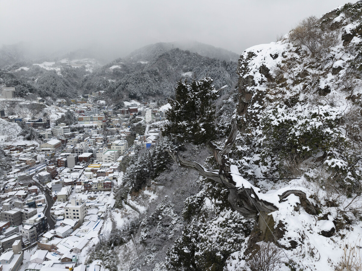 겨울의 심장부에 들어선 울릉도의 관문 도동항. 살을 에듯 불어오는 바닷바람과 마을을 집어삼킬 듯 내리는 폭설 속에서도 꿋꿋이 자리를 지키는 ‘산증인’이 있다. 해발 90m 높이의 아찔한 수직 암벽 끝, 흙 한 줌 없는 바위틈에 뿌리를 내린 향나무 ‘석향(石香)’이다.