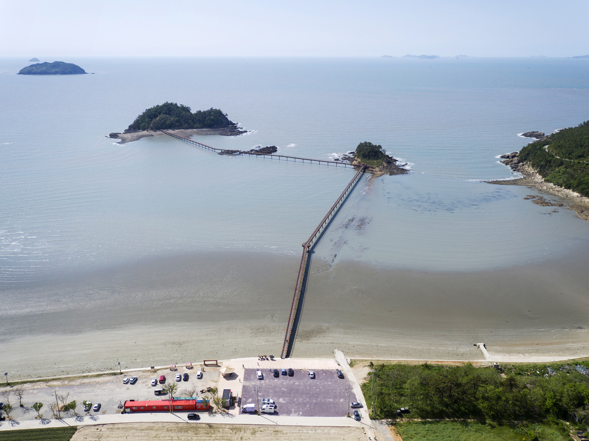 둔장해변 앞에는 길이 1004m의 인도교 ‘무한의 다리’가 놓여 있다. 다리를 건너면 무인도인 구리도와 고도, 할미도가 차례로 이어진다. 섬과 섬을 잇는 연속성과 끝없는 발전을 염원하는 뜻을 담아 이름 붙은 다리로, 신안군 1도1뮤지엄 아트 프로젝트에 참여한 조각가 박은선과 스위스 출신 건축가 마리오 보타의 손길이 닿았다. 겨울 바다 위로 길게 뻗은 다리는 그 자체로 하나의 풍경이 된다.