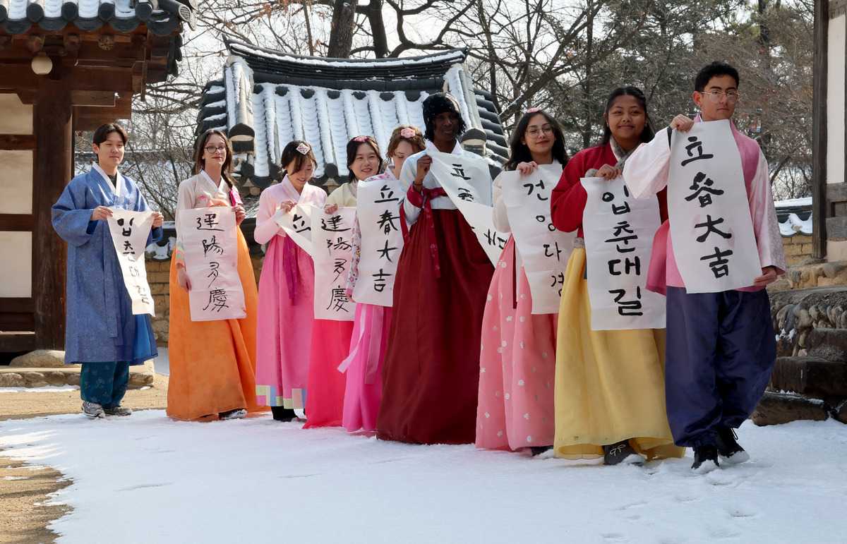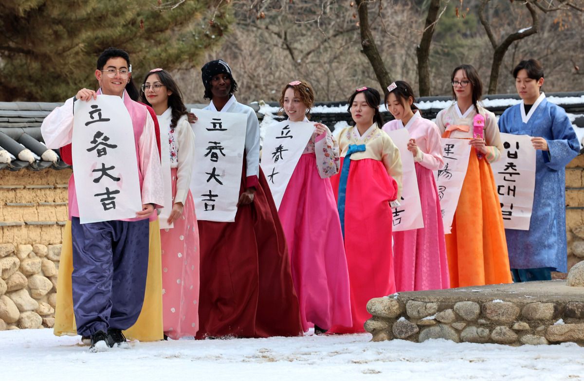 눈 속에서 입춘 소식 전하는 영남대 교환학생