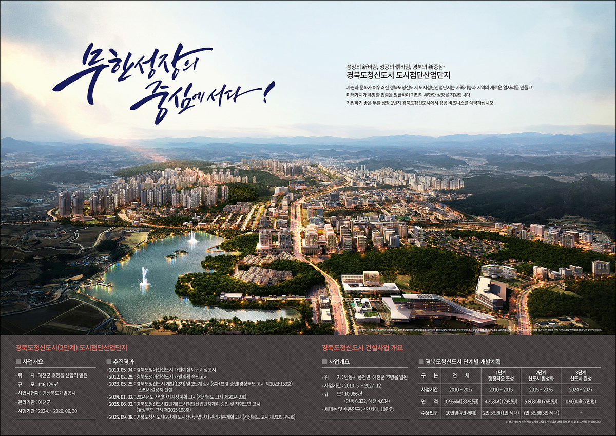 경북도와 예천군, 경상북도개발공사가 공동으로 추진하는 ‘경북도청신도시(2단계) 도시첨단산업단지’가 본격적인 기업 유치에 나섰다.