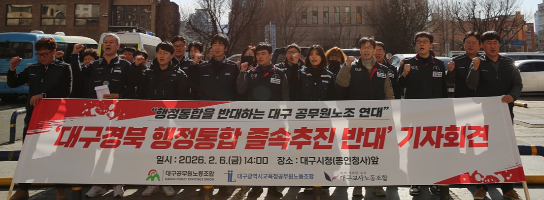 한편 대구·경북 행정통합에 반대하는 ‘대구공무원노조 연대’는 6일 오후 대구시청 동인청사 앞에서 공동 기자회견을 열고 “‘졸속 행정통합’을 반대한다”며 통합 추진 중단을 촉구했다.