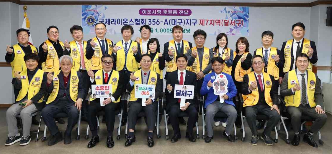 국제라이온스협회 356-A(대구)지구 제7지역(지역부총재 백인열)은 최근 지역 내 어려운 이웃을 위해 써달라며 생필품 150세트(1100만 원 상당)를 대구 달서구에 기탁했다.