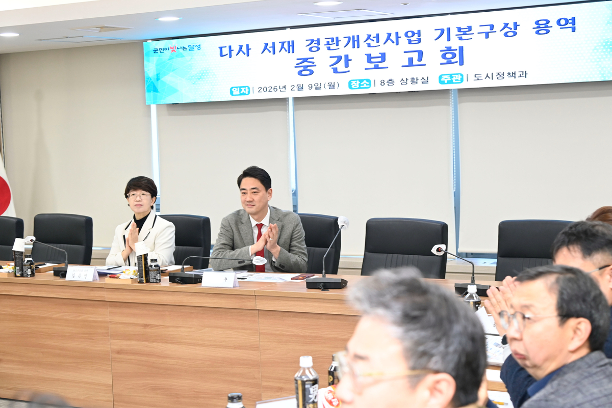 달성군은 지난 9일 군청에서 ‘다사 서재 경관개선사업 기본구상 용역’ 중간보고회를 열고 도시환경 개선 기본구상안을 공유했다. 최재훈 군수를 비롯해 군의회 주요 인사와 도시·경관 전문가 20여 명이 참석했으며, 보고회에서는 서재리 정체성 회복과 보행 환경 개선, 노후 주거지 정비 등 주민 체감형 개선 방안이 논의됐다.