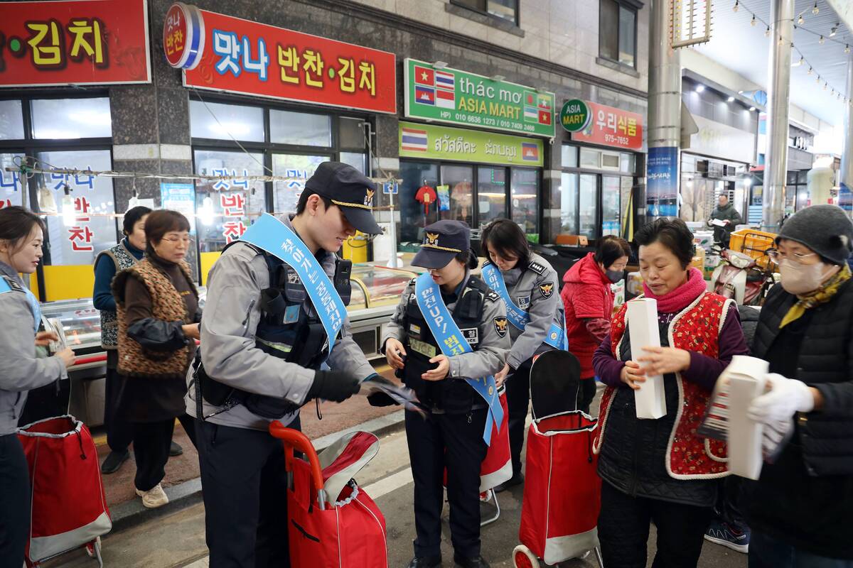 설 명절을 앞두고 경북 칠곡의 전통시장에 경찰이 ‘장바구니 수레’를 끌고 등장했다. 단속이나 계도 중심의 일방적 활동이 아니라, 시장 골목을 돌며 주민과 눈을 맞추는 현장형 치안 서비스였다.
