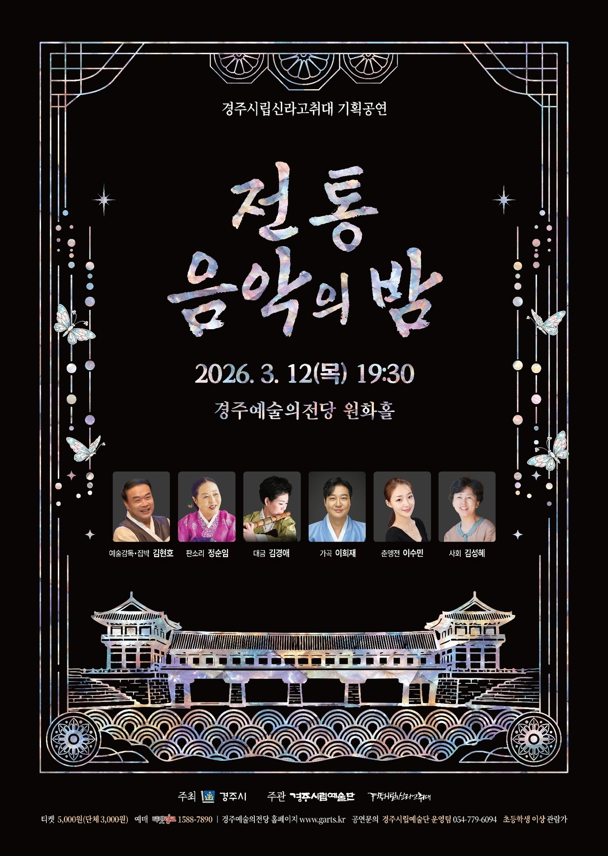주낙영 경주시장은 “이번 공연은 전통음악의 정수를 온전히 느낄 수 있도록 다양한 장르를 조화롭게 구성했다”며 “공연을 통해 경주의 아름다움과 한국 전통예술의 깊은 울림을 함께 체감하며 경주의 브랜드 가치를 확인하시길 바란다”고 밝혔다.