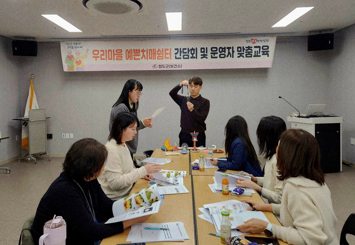 청도군은 치매 사각지대에 놓인 어르신을 위한 ‘2026년 우리 마을 예쁜 치매 쉼터’ 프로그램의 내실 있는 운영을 위한 간담회와 운영자 맞춤교육을 23일 시행했다.