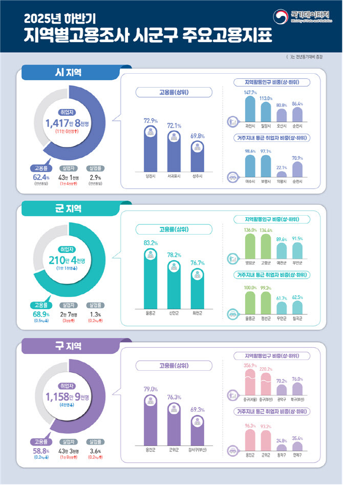 24일 국가데이터처가 발표한 ‘2025년 하반기 지역별 고용조사’에 따르면 울릉군의 고용률은 82.5%를 기록하면서 전국 평균을 크게 웃돌았다.