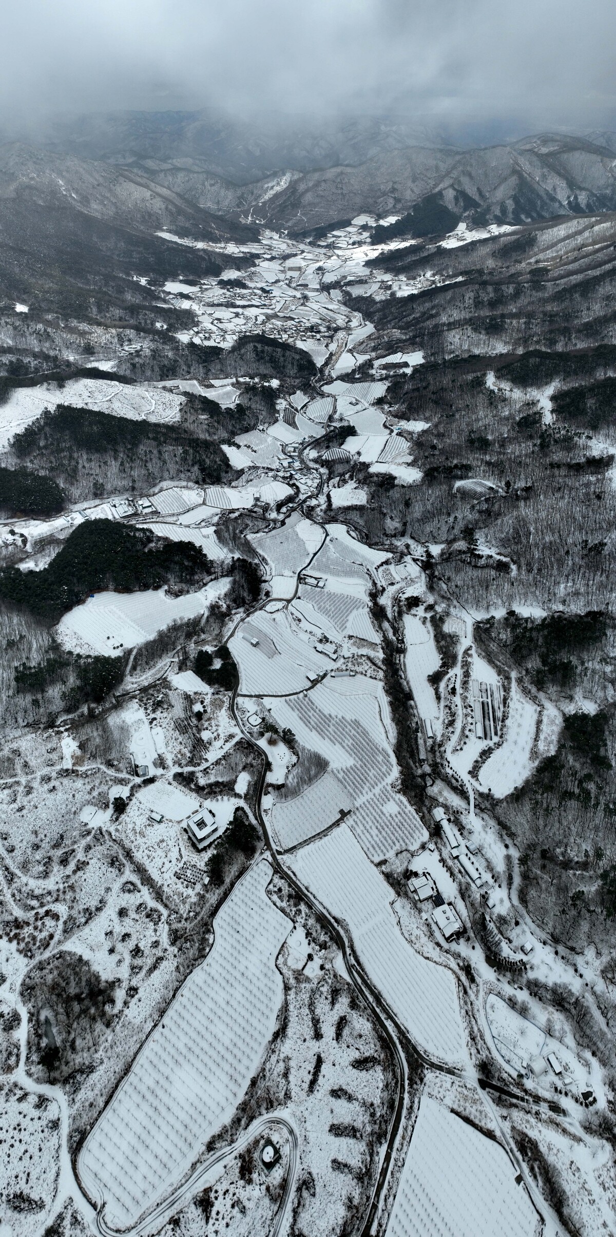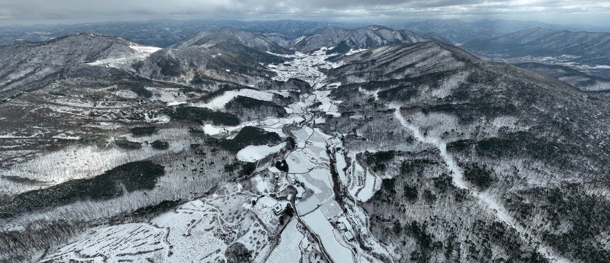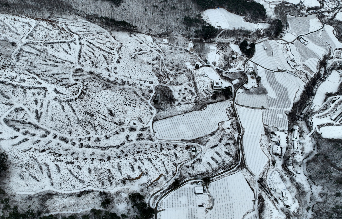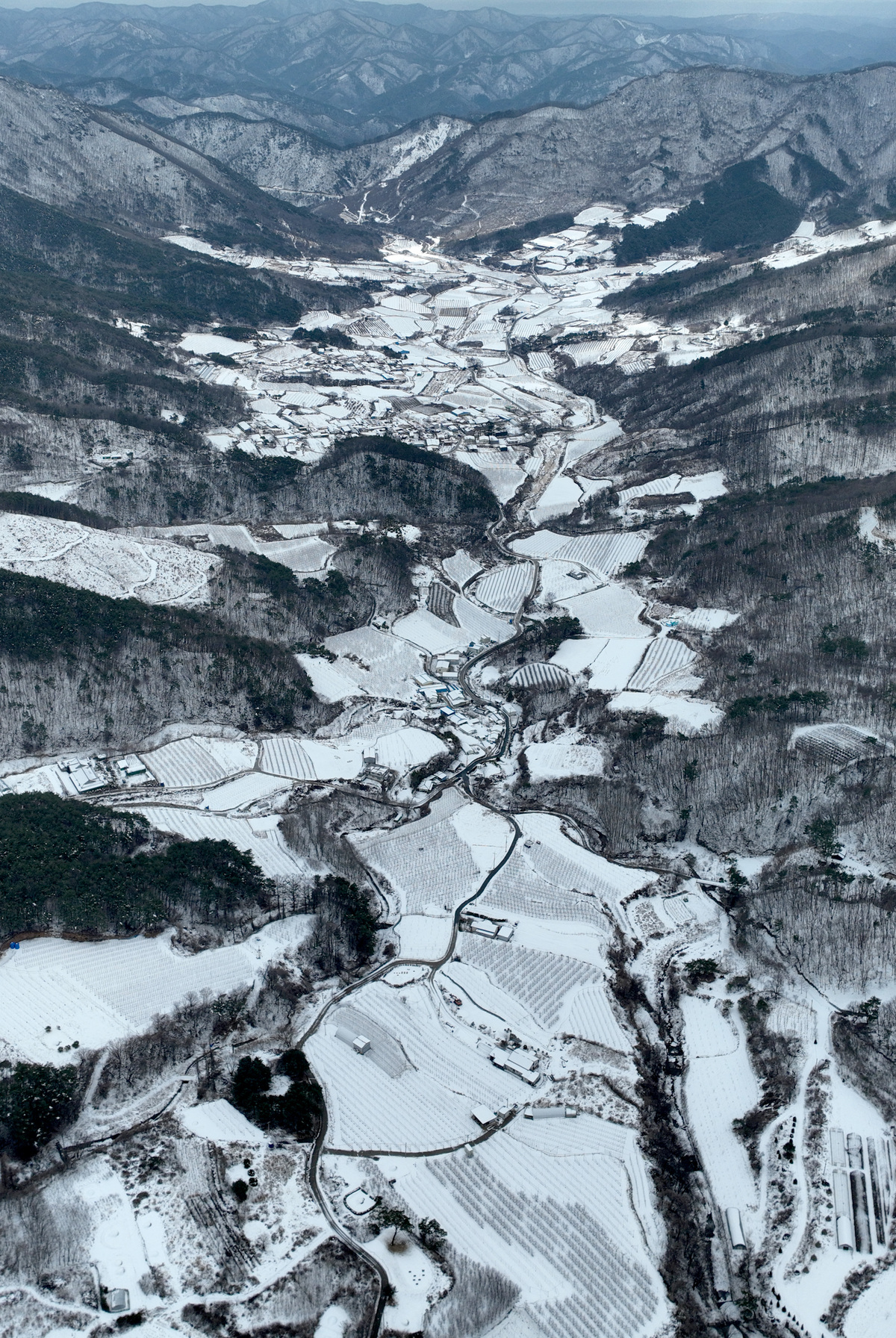 꽃피는 춘삼월을 앞두고 밤사이 눈이 내린 25일 오전 포항시 북구 죽장면 두마리 일원에 수묵화 같은 설경이 펼쳐지고 있다. /이용선기자 photokid@kbmaeil.com