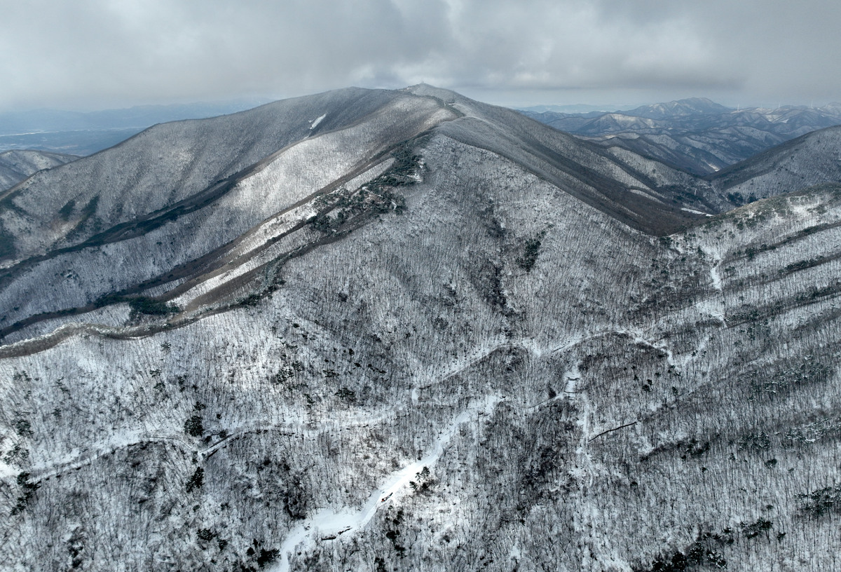 꽃피는 춘삼월을 앞두고 밤사이 눈이 내린 25일 오전 포항시 북구 죽장면 두마리 면봉산에서 영천시 화북면 보현산천문대까지 수묵화 같은 설경이 펼쳐지고 있다. /이용선기자 photokid@kbmaeil.com