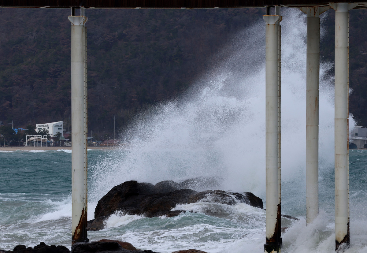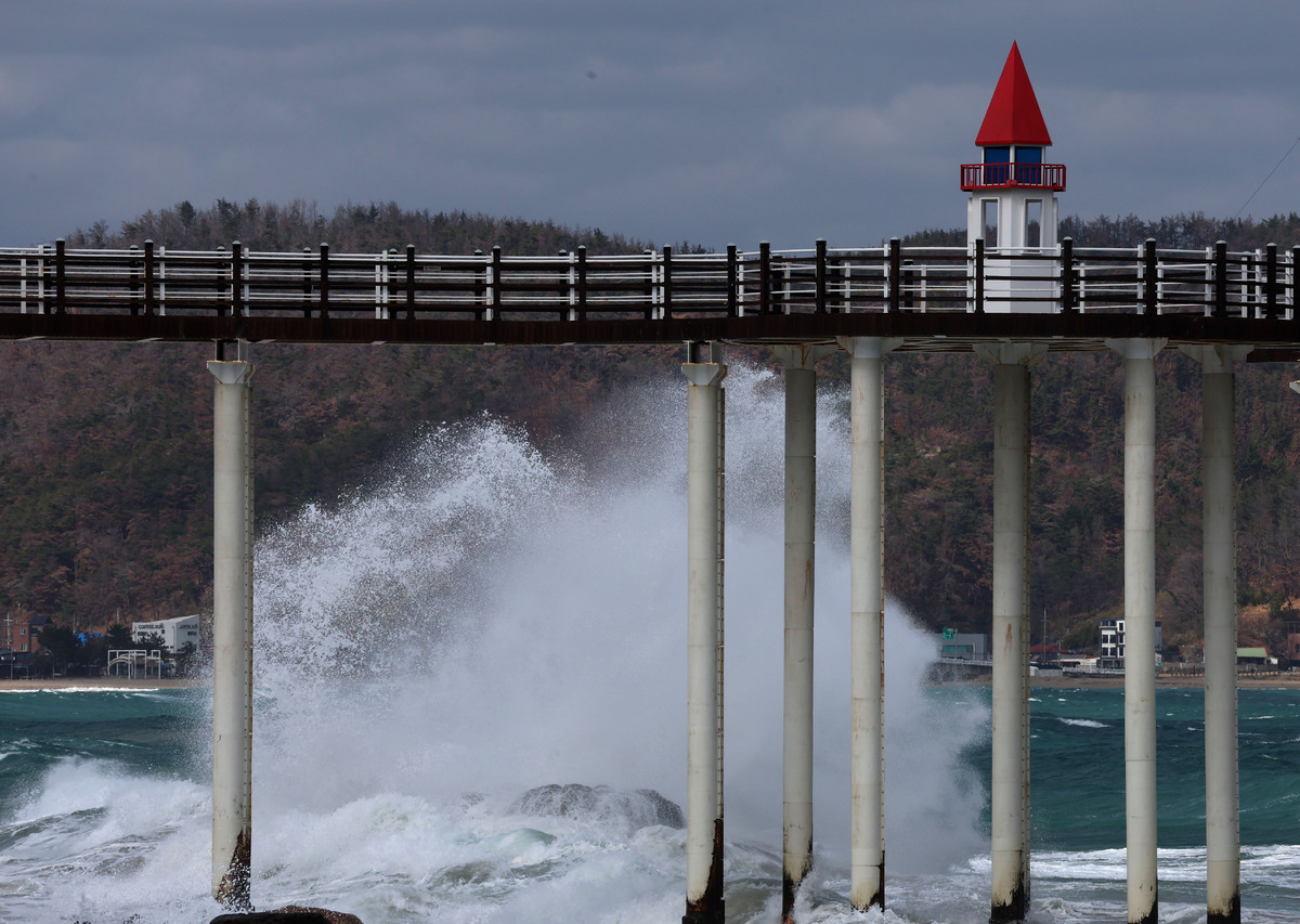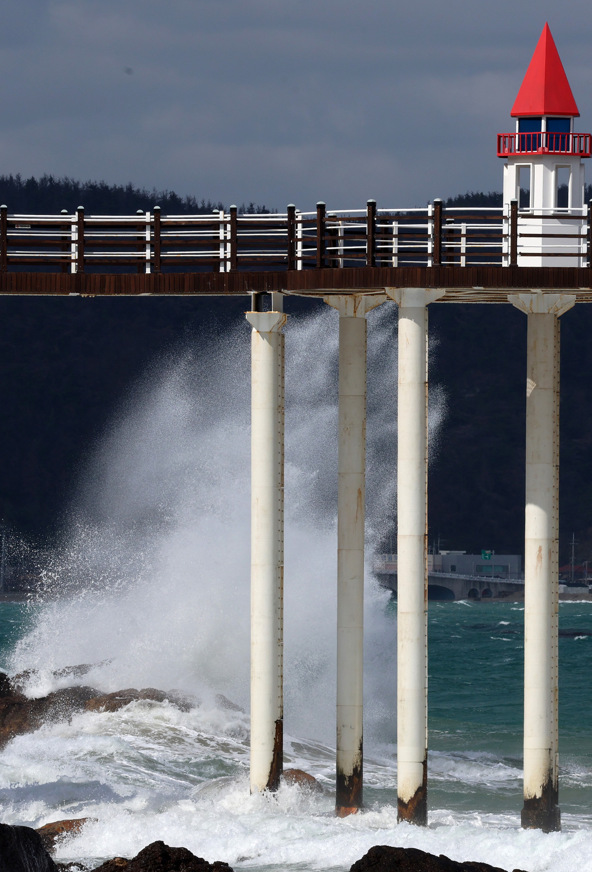 경북 지역 앞바다에 풍랑주의보가 내려진 25일 오후 포항시 북구 청하면 이가리 닻 전망대 갯바위에 집채만 한 파도가 부서지고 있다. /이용선기자 photokid@kbmaeil.com
