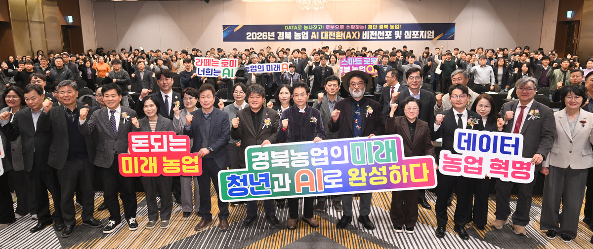 기술원은 25일 ‘2026년 경북농업 인공지능 대전환(AX) 비전 선포 및 심포지엄’을 열었다. ‘경북농업의 미래, 청년과 AI로 완성하다’라는 슬로건으로 △데이터 혁신 △로봇·자동화 △청년농 육성 등 3대 추진 전략을 발표했다.
